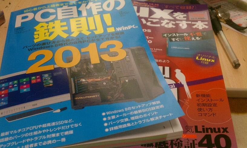 精神的に色々患いまして、どうにもオンラインに上がってこれなかった智風です。 やっとちょっと復活しましたが、集中講義はお休みしてますゲフンゴフン。 それでも。 まあ、のんびりと色々やっております。 最近は、ポケモンのダイヤモンド始めました。 新たなる旅立ちはいつでもどきどきわくわくです。 まーだメンツは確定してませんねー。 ハヤシガメ・ルクシオ・ムクバードあたりが今のところ育っておりますかね。 あとどーしよーかなー。 考え中です。 こういうのは、考えてる最中が楽しいですよね。 メンツが決まったら擬人化ですね。 それも楽しみ。 それとこの頃は。 パソコン熱がふつふつと再熱中で、こんな雑誌を買っては頭をひねっております。 お金が足りない……! 低スペックでいいから! あと2台くらい! パソコンが欲しい! 欲を言うなら! 3台欲しい! ダメですね、物欲に負けてますね……。 友達と断捨離!とか言ってはいるんですけどねー……。 いやはや。 さてさて。 明日はクリスマスですが、独り身のワタクシは独り淋しいクリスマスです……。 いいんだ、絵とか描いて楽しく過ごすんだ……。 あ、最近でもないんですけどやっとこさpixiv始めましたのでちょこちょこイラストあげたいです(願望)。 ではでは。 PR |